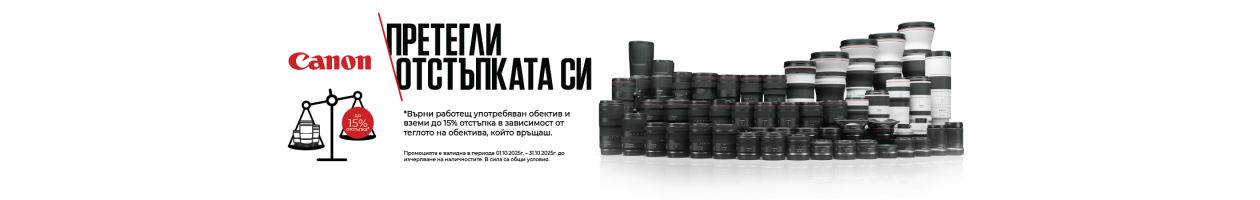 Върнете стар работещ обектив/ви и вземете допълнителна отстъпка в зависимост от теглото. Отстъпката се начислява спрямо стандартната НЕпромоционална цена на продукта. Повече за условията научете тук.
